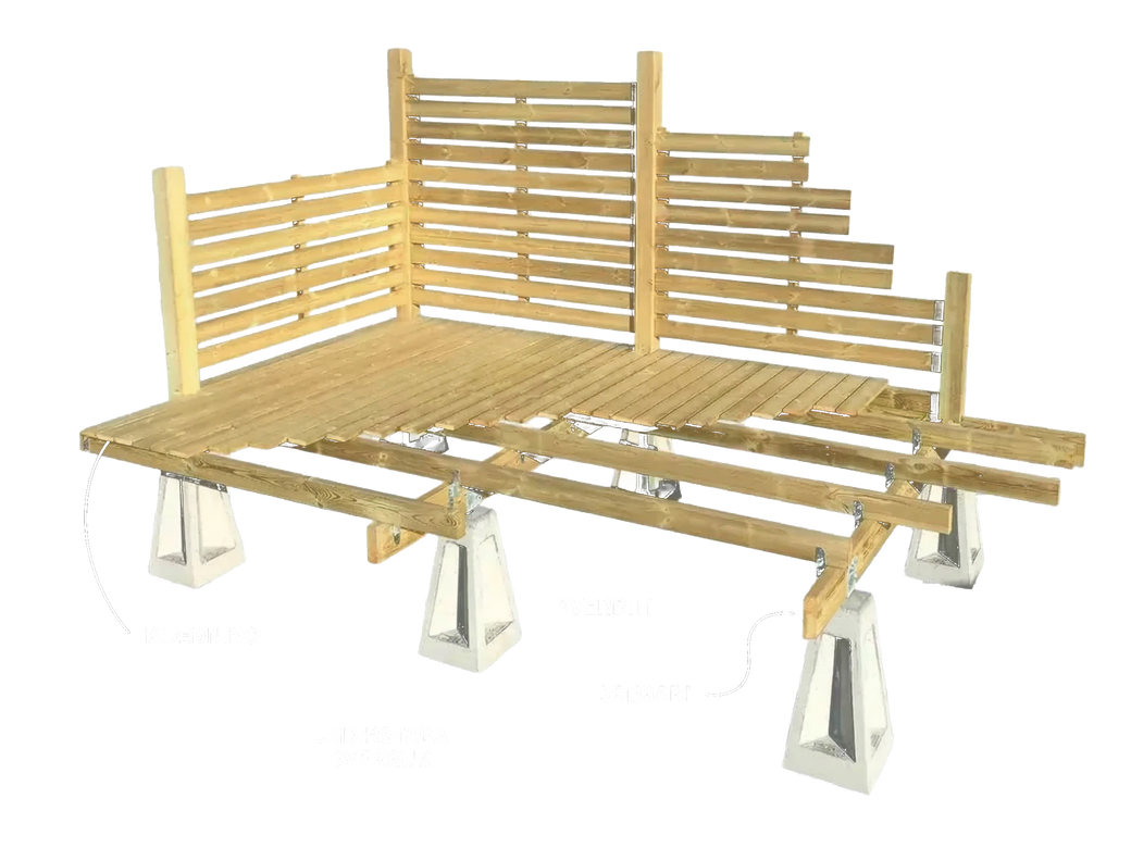 Forsteyptar undirstöður og galvanísert tengistykki sem gera þér kleift að byggja sólpall, girðingu eða smáhýsi á nokkrum klukkustundum.