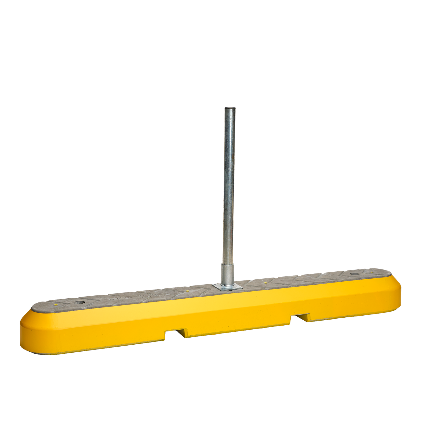 Ofan á kantsteininn eru innsteyptar M16 heitgalvanhúðaðar múrhulsur sem passa fullkomlega fyrir sérhannaðan 2" röraskó og rör eins og sést hér.
