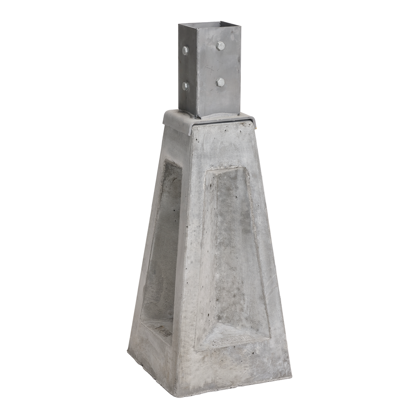 Undirstaðan er grafinn og ofan á henni er skór sem er með niðurbeygðar hliðar til að passa að staurinn snúist ekki í vindi. Það fylgja festingar til að festa skóinn á undirstöðuna og einnig til að festa staurinn í skóinn.