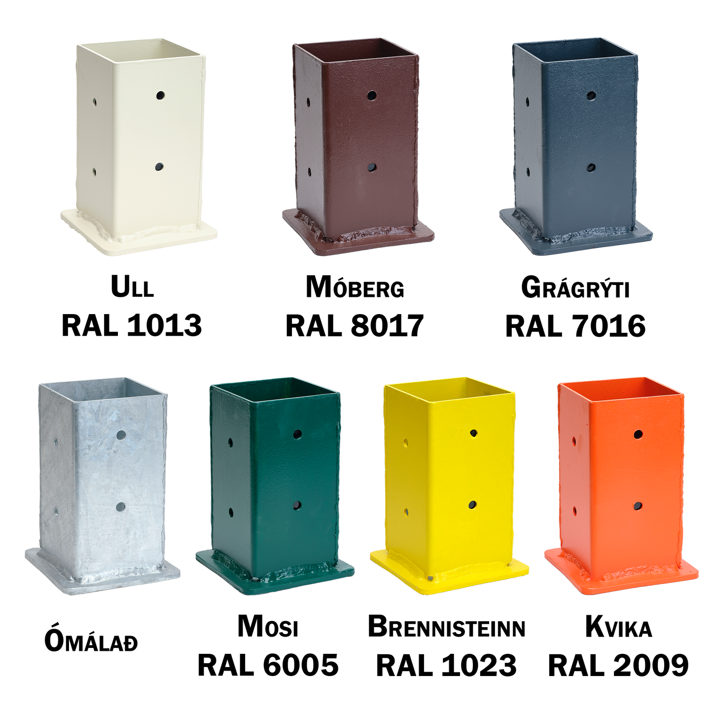 Það fylgja festingar til að festa skóinn á undirstöðuna og einnig til að festa staurinn í skóinn.