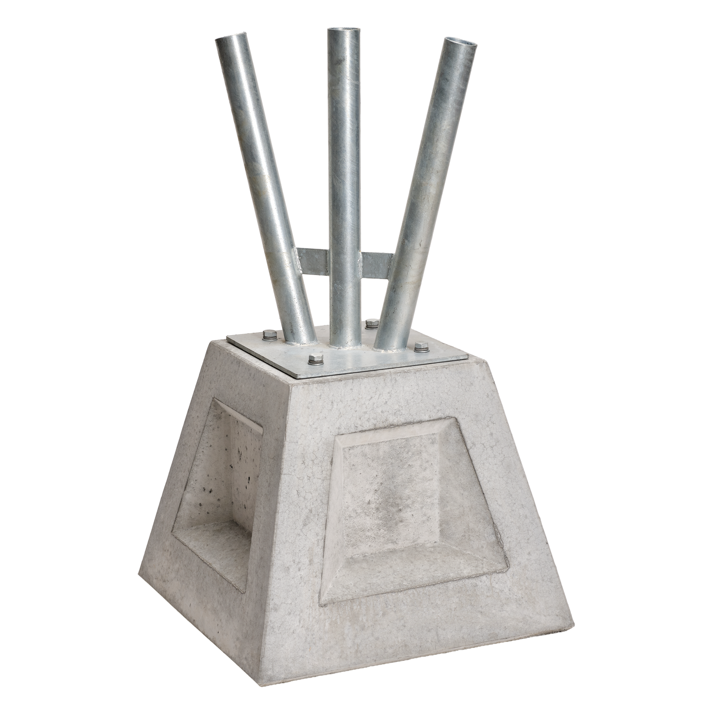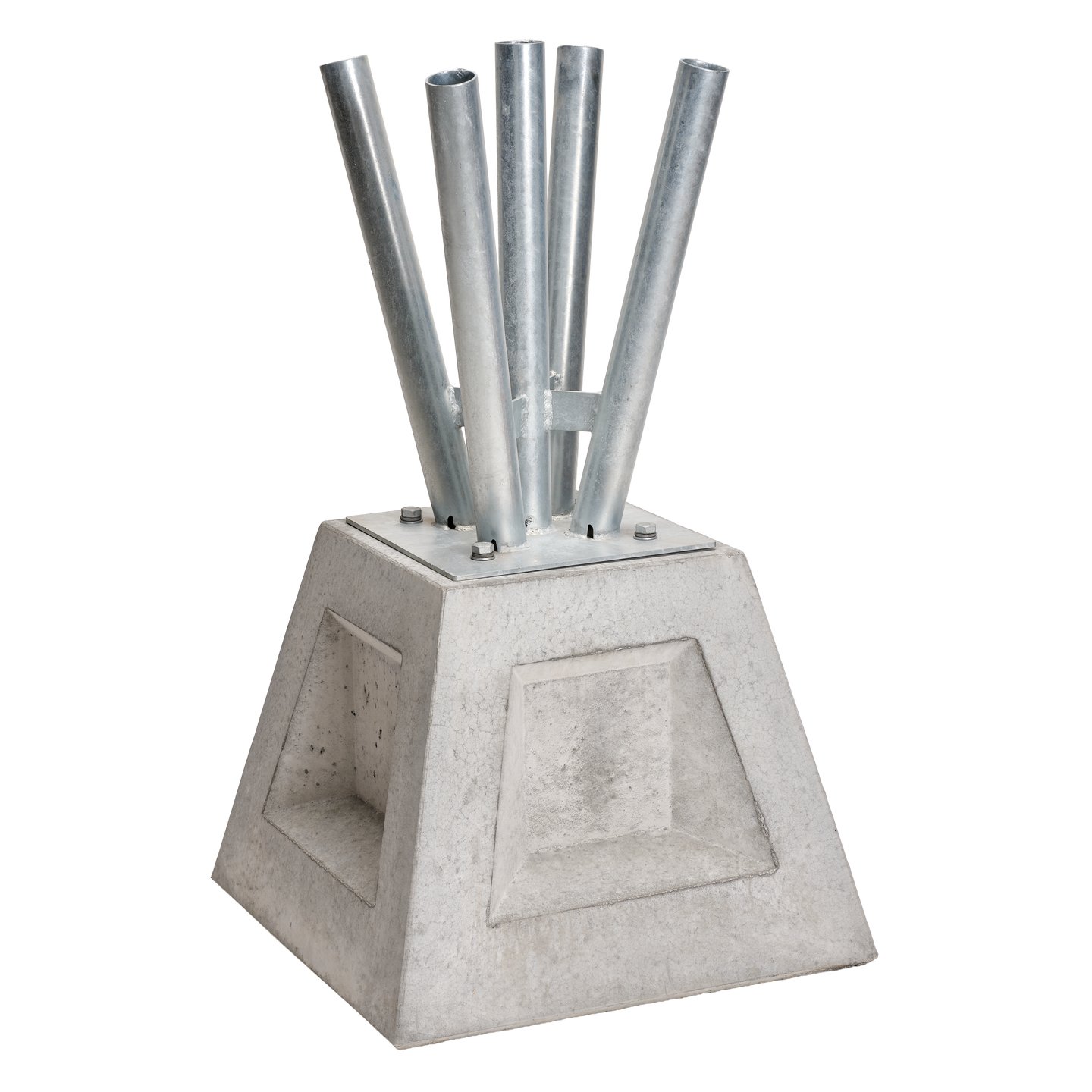 Ál- eða stálrörunum er stungið ofan í 3 eða 5 stk 60cm hólka og ganga þau 30cm niður í þá.